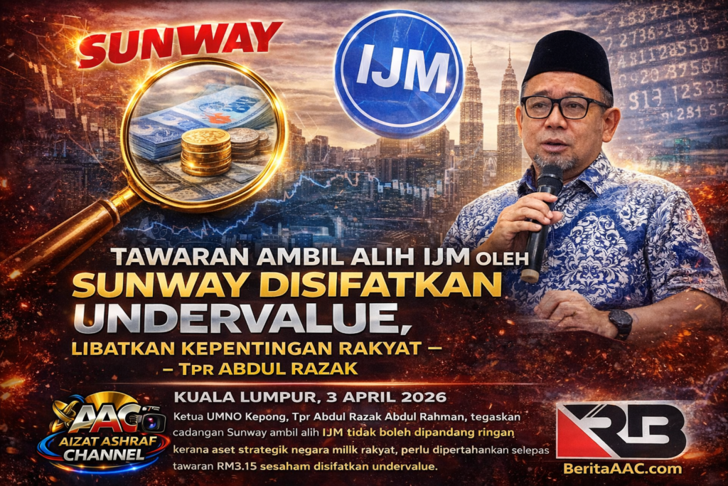 KUALA LUMPUR, 3 April 2026 – Cadangan pengambilalihan IJM Corporation Berhad oleh Sunway Berhad terus mengundang perhatian apabila Ketua UMNO Bahagian Kepong, Tpr Abdul Razak Abdul Rahman, menyuarakan kebimbangan terhadap implikasi urus niaga itu ke atas kepentingan rakyat dan aset strategik negara.