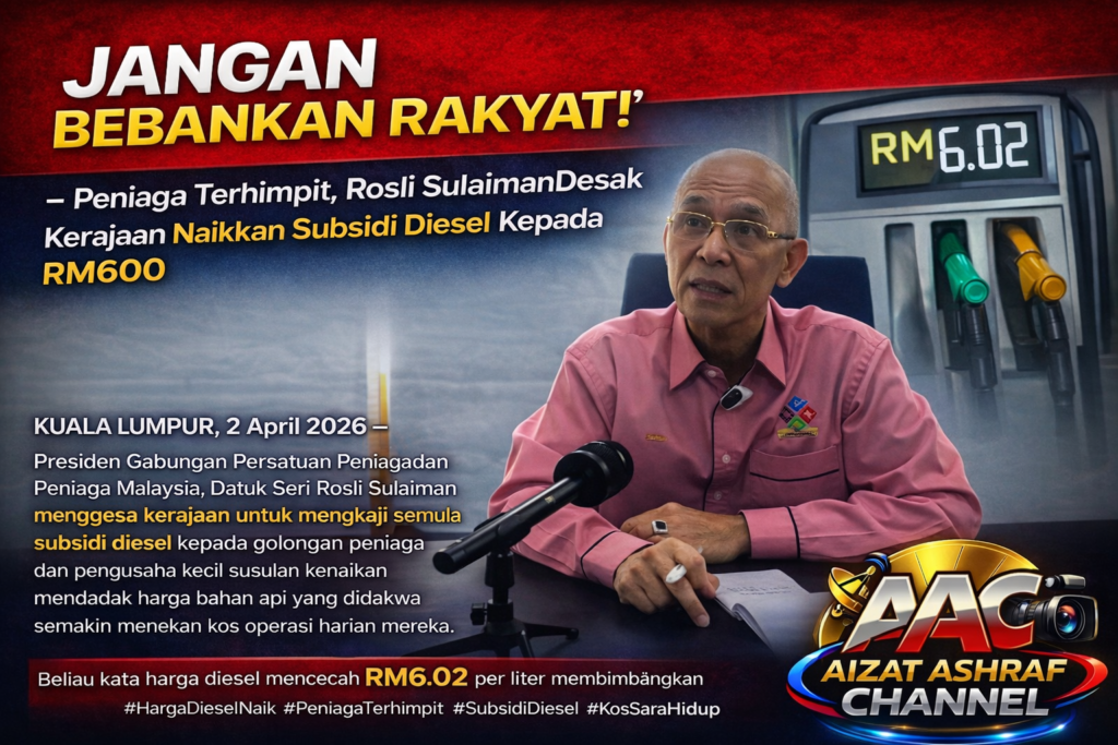 KUALA LUMPUR, 2 April 2026 – Presiden Gabungan Persatuan Penjaja dan Peniaga Malaysia, Datuk Seri Rosli Sulaiman menggesa kerajaan supaya mengkaji semula kadar subsidi diesel kepada golongan peniaga dan pengusaha kecil susulan kenaikan mendadak harga bahan api yang didakwa semakin menekan kos operasi harian mereka.